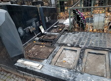 После чего водрузили новые надгробья на подготовленные основания.